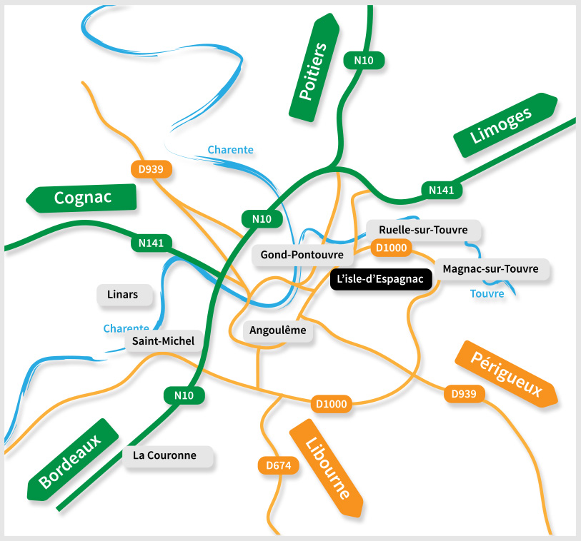 Pour rejoindre L’Isle D’Espagnac en train il faut s’arrêter en gare d’Angoulême.
